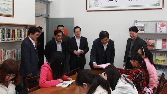仪式结束后,商志晓等饶有兴趣的参观了“三励书屋”,详细了解了书屋的建设现状和管理使用情况,并与师生亲切交流。商志晓勉励同学们要养成“好读书、读好书”的良好习惯,让读书成为学生释放生命的正能量、提升自身素质形象的力量源泉。