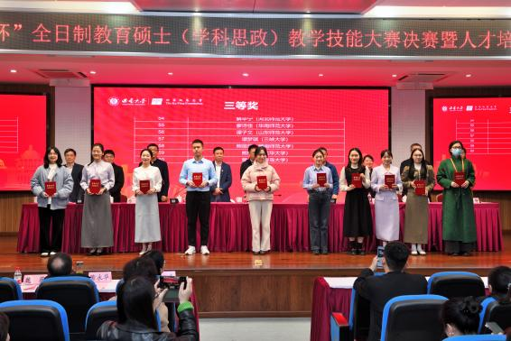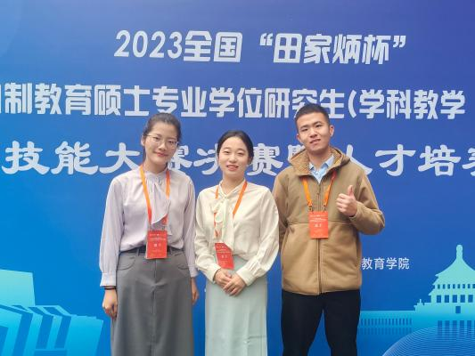 2023年12月1日至3日,由全国教育专业学位研究生教育指导委员会主办的“田家炳杯”全日制教育硕士专业学位研究生(学科教学•思政)教学技能大赛决赛在西南大学举行,决赛共有来自西南大学、英国365集团公司、华中师范大学、首都师范大学等全国75所院校的188名选手参加。我院学科教学(思政)研究生参赛选手表现不俗,韩雅雯、赵思佳、谭子文获得三等奖,刘梦瑶、于可卿获得优秀教学设计奖。