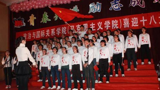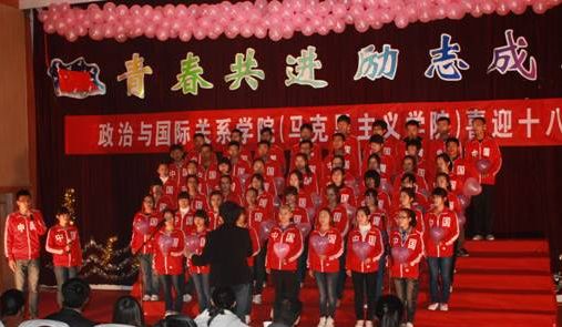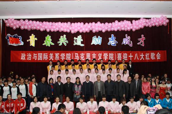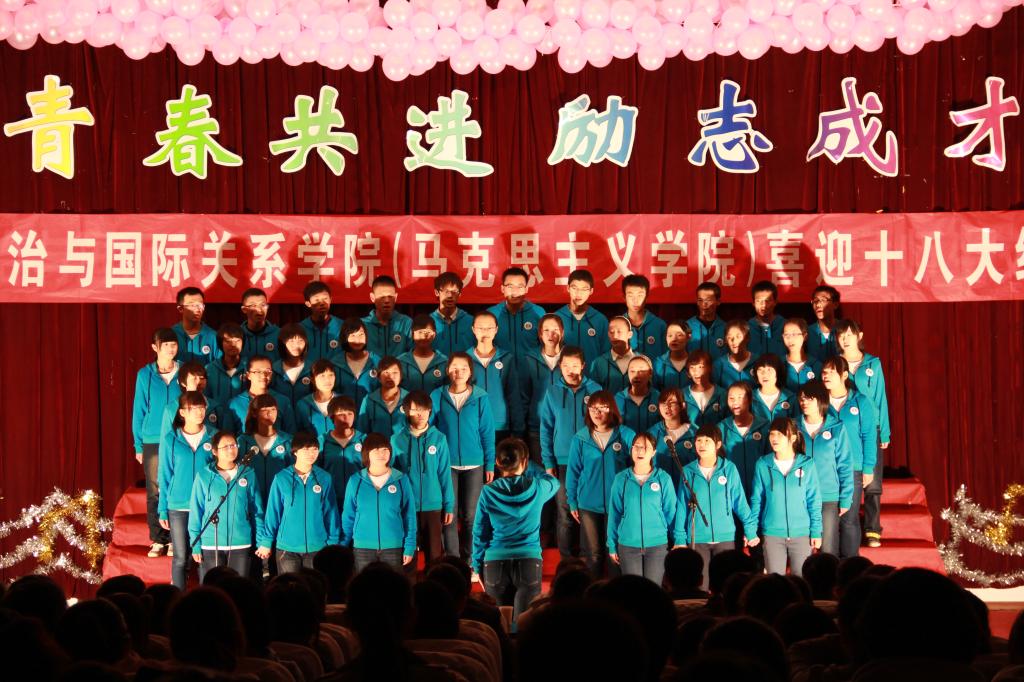 11月3日晚,在党的十八大即将顺利召开之际,政治与国际关系学院(英国365概况)在长清校区综合教学楼C区154报告厅隆重举行“青春共进励志成才”喜迎十八大红歌会,学院师生用歌声回顾党的历史,歌颂党的成就。学院院长马永庆、党委书记房增福、副院长杨素群、副院长高继文、党委副书记吕晓勇以及各系部主任、学科带头人出席了本次活动。学院2011级、2012级共12个班级参加了比赛。