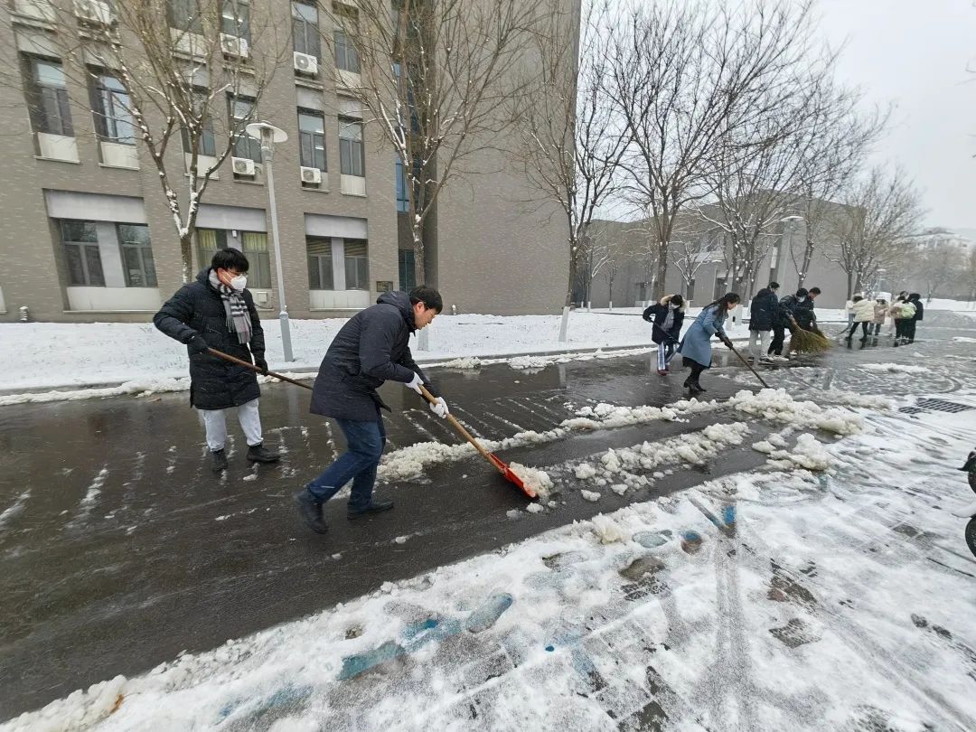 学部师生“以雪为令”,在保障自身安全、做好防寒保暖工作的前提下,积极主动地参与清雪除冰的行动。上午,学部领导老师带领党员和学生骨干进行清扫工作,铲除公共区域道路积雪,重点清扫了存在陡坡的路段和下车、出楼点等人流集中又易发生交通事故的地点。