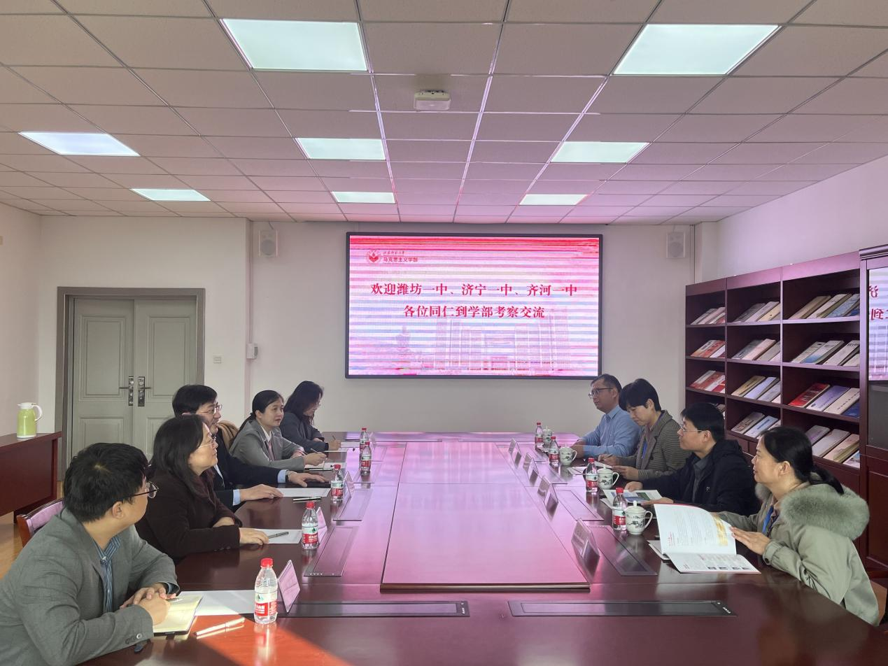 双方现场签订了合作共建优质实践教学基地协议。下一步,学部将与潍坊一中、济宁一中、齐河一中在学生实习、师资培训、教研课题研究等方面开展深入合作,加快推进双方育人事业蓬勃发展。