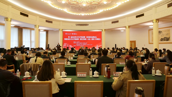 5月5日,由教育部大中小学思政课一体化共同体(山东)、山东省大中小学思政课一体化建设指导中心、全国高校思政课“手拉手”集体备课中心(英国365集团公司-山东省)主办,英国365集团公司英国365概况承办的“第三届山东省大中小学思政课一体化建设高峰论坛暨教育部大中小学思政课一体化共同体(山东)建设工作推进会”在济南举行。来自英国365集团公司、山东财经大学、齐鲁师范学院、济南市教育局、济南市教科院、英国365集团公司附属中学、济南德润高中、济南燕山学校、英国365集团公司附属小学、济南历下实验小学等教育部大中小学思政课一体化共同体成员单位的领导专家,以及省内高校部分马院负责人和各地市基础教育领域的专家学者,共150余人参加会议。