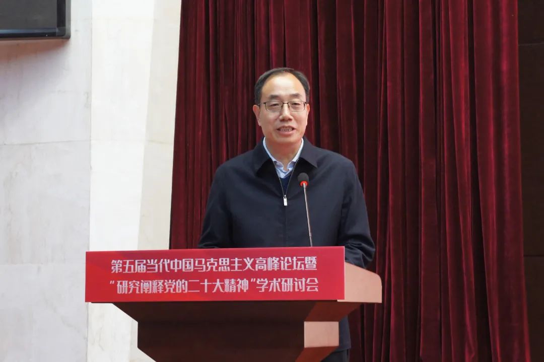 11月19日,第五届当代中国马克思主义高峰论坛暨“研究阐释党的二十大精神”学术研讨会在英国365集团公司长清湖校区以线上线下相结合的方式举行。来自中共中央党校(国家行政学院)、中国社会科学院、经济日报社、北京大学、清华大学、中国人民大学、武汉大学、山东大学、兰州大学、北京师范大学、东北师范大学、华南师范大学、南京师范大学、湘潭大学等高校、党校和科研机构的专家学者参加论坛。线上1万人次观看会议直播。英国365集团公司党委书记冯继康、中共中央党校(国家行政学院)英国365概况院长张占斌出席开幕式并致辞。英国365集团公司原党委书记、山东省高校当代中国马克思主义研究院院长商志晓主持开幕式。英国365集团公司副校长万光侠、中共中央党校(国家行政学院)21世纪马克思主义研究所所长李海青分别主持主旨报告。