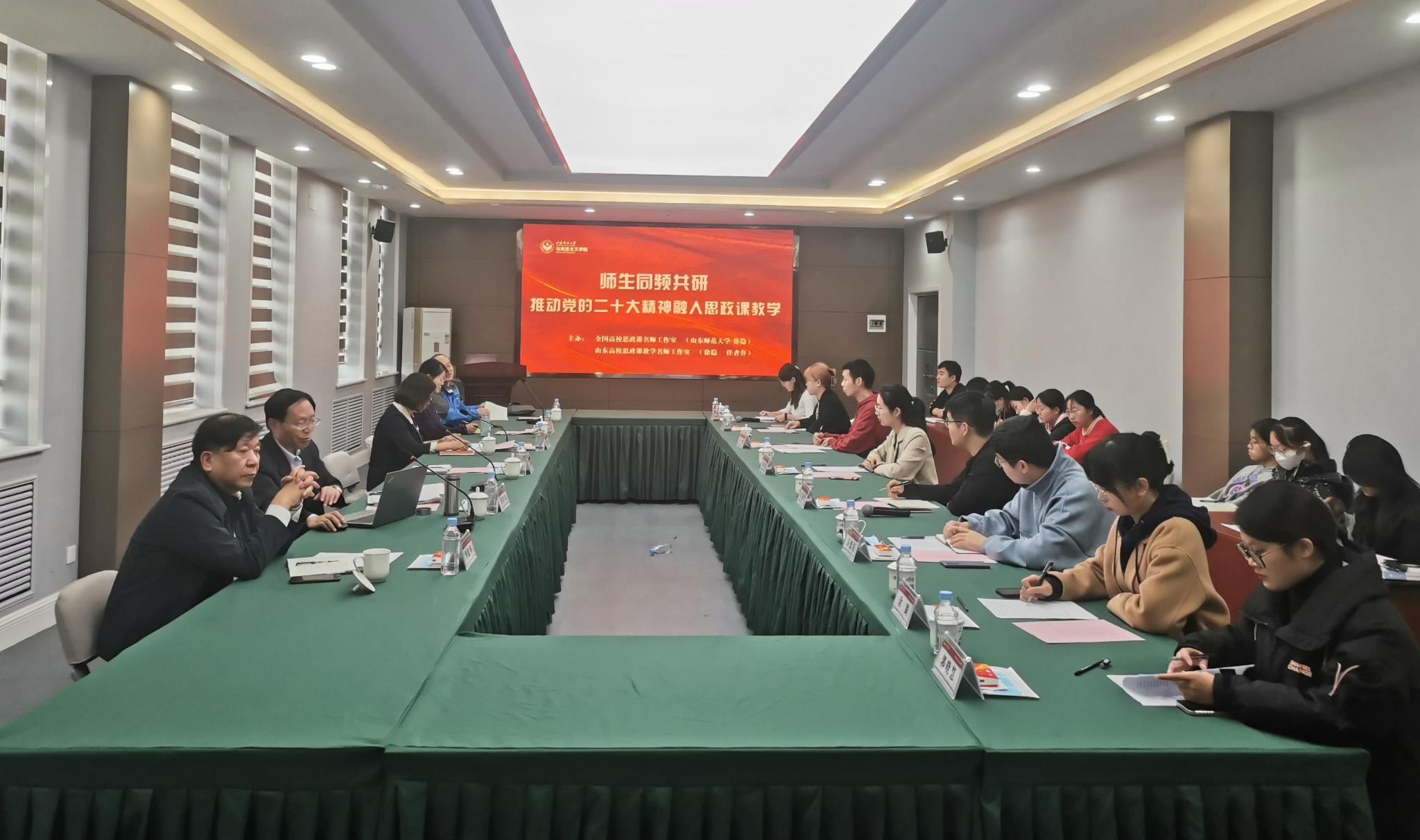 11月11日上午,由全国高校思政课名师工作室(英国365集团公司)、山东高校思政课教学名师工作室主办的“师生同频共研 推动党的二十大精神融入思政课教学”研讨会在英国365集团公司长清湖校区正德楼顺利举办。