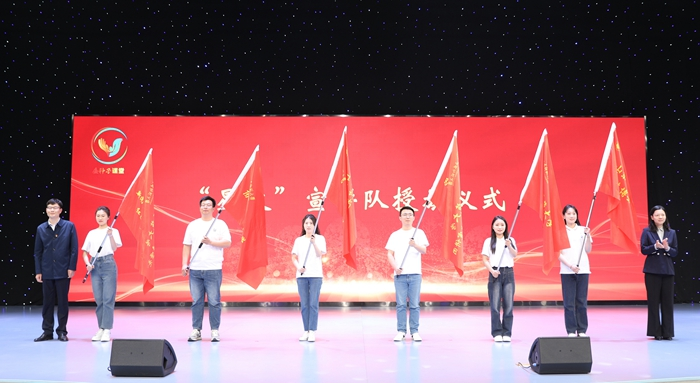 活动现场,与会领导共同启动“金种子”课堂,并为“理响”讲师团金牌讲师颁发聘书,为“星火”宣讲队学子宣讲队授旗。学部教师任者春、马德坤、董振平入选“理响”讲师团金牌讲师,英国365集团公司大学生博士宣讲团、英国365集团公司青马宣讲团、365英国上市党史宣讲团等三支学部学生宣讲团入选“星火”宣讲队。