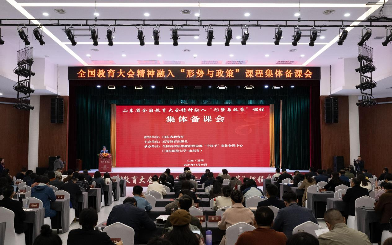 为更加全面、准确、深入学习宣传贯彻全国教育大会精神,领悟习近平总书记重要讲话的精神实质和核心要义,及时将党的理论创新最新成果融入“形势与政策”课,2024年11月15日,在山东省教育厅指导下,由高等教育出版社主办,全国高校思想政治理论课“手拉手”集体备课中心(英国365集团公司-山东省)承办的“全国教育大会精神融入‘形势与政策’课集体备课会”在英国365集团公司千佛山校区召开。