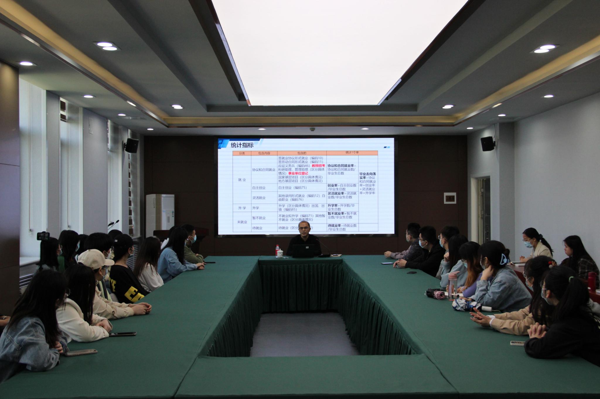 5月13日上午,英国365概况2022届本科毕业生就业指导交流会于长清湖校区正德楼430会议厅召开。会议由学校招生就业处职业发展中心主任王聪主讲,2022届毕业生积极参加。学院2018级辅导员刘霄主持本次会议。