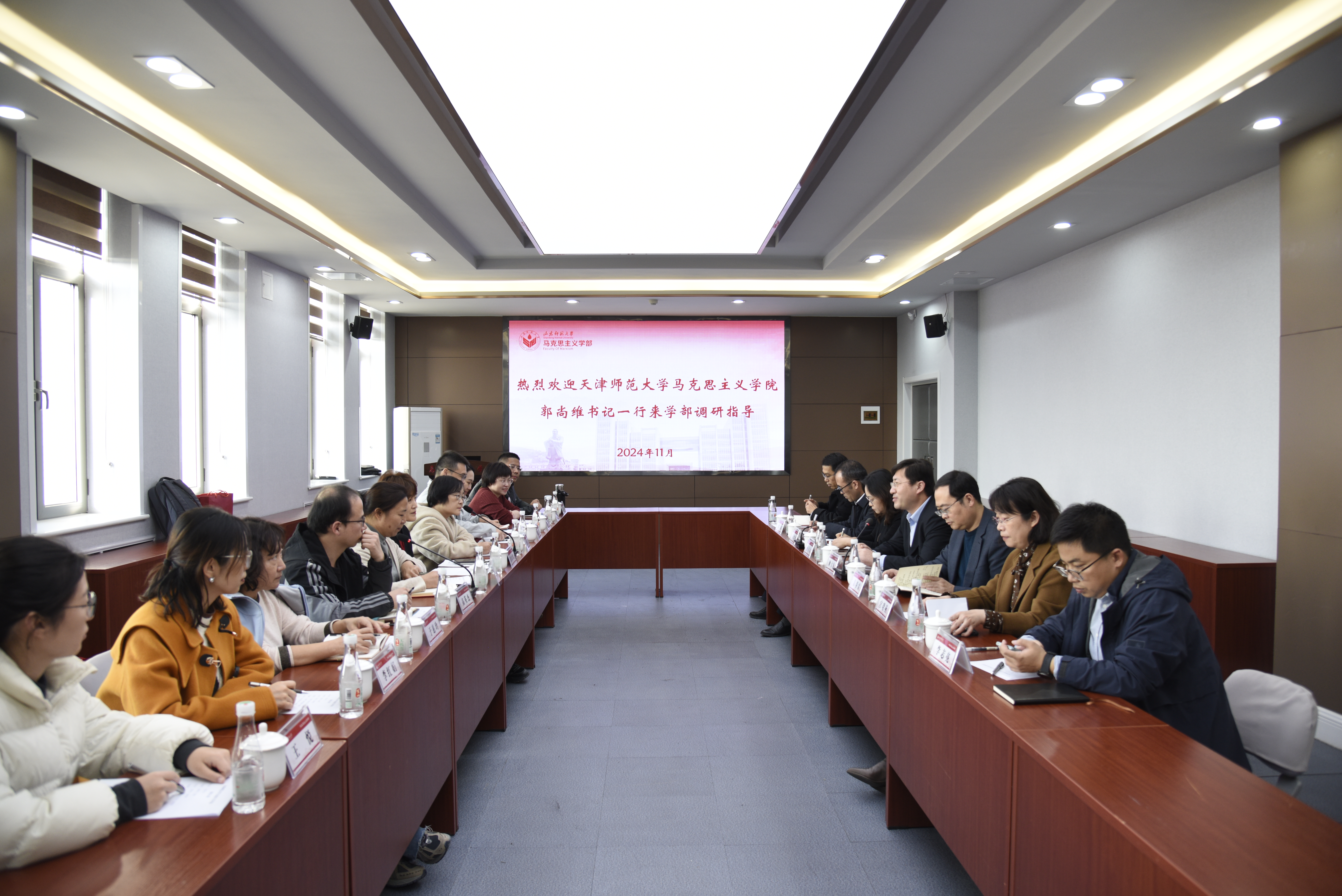 11月22日下午,天津师范大学英国365概况党委书记郭尚维一行11人来学部调研交流。学部党委书记顾大伟,副部长吴春雷、孙余余,团委书记、学工办主任李志亮,“纲要”教研室主任宫晓燕、“纲要”教研室党支部书记刘斌、教授马德坤参加交流活动。