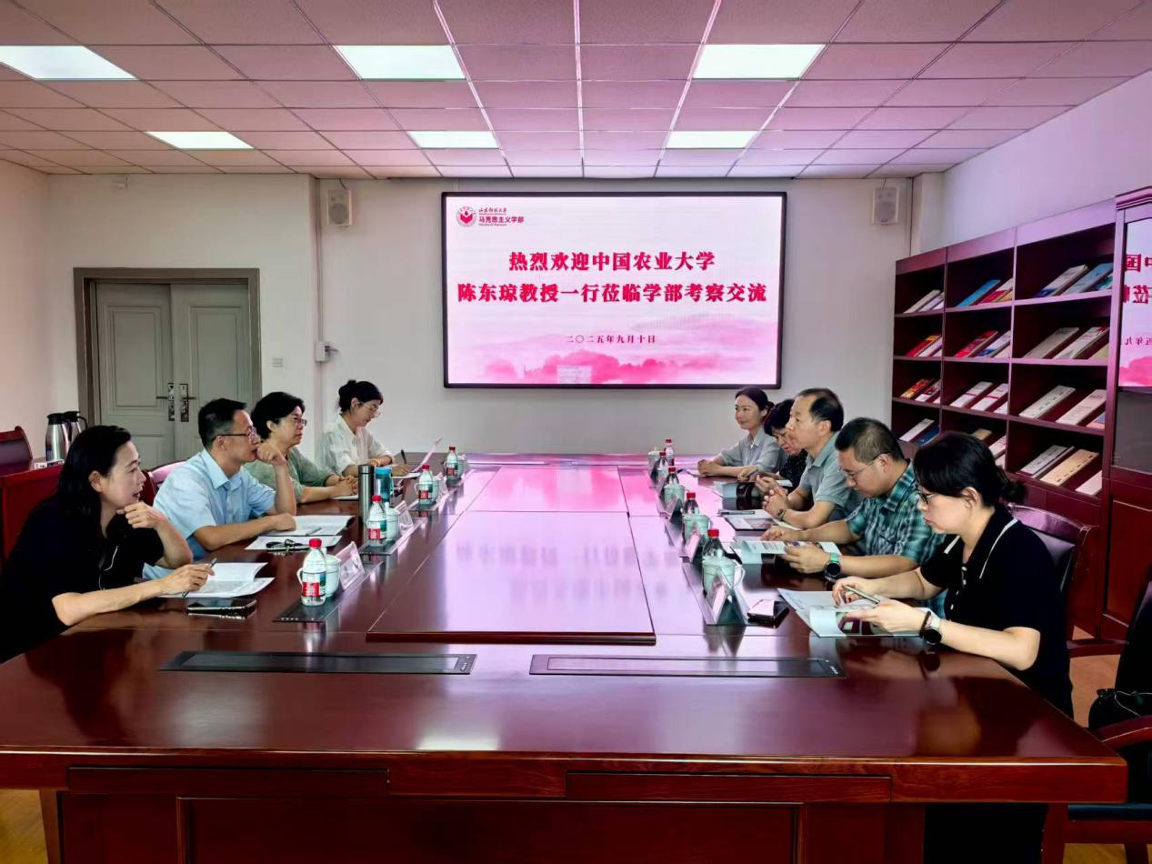 9月10日上午,中国农业大学英国365概况马克思主义中国化系党支部书记、系主任陈东琼教授一行五人赴学部调研考察,并于正德楼312会议室开展座谈交流。学部毛泽东思想和中国特色社会主义理论体系概论教研部主任、教授吕松涛,毛泽东思想和中国特色社会主义理论体系概论教研部党支部书记、副教授冯芸,副教授曹宏,讲师张伟丽参加交流活动。会议由吕松涛主持。