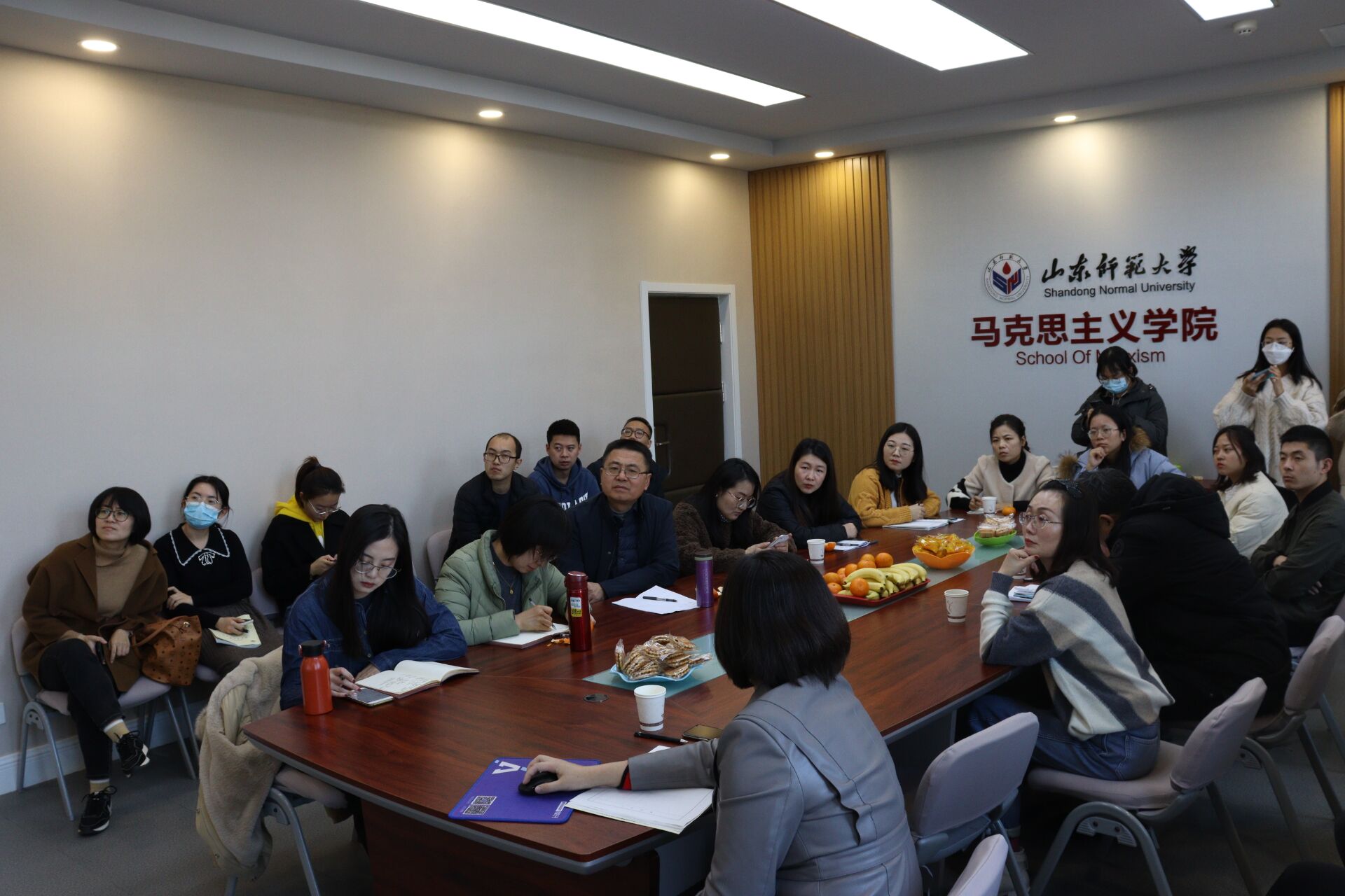 会议伊始,潘磊从师生、学院及学校三种视角出发,阐释了提升学院师生一起创新创业能力的重要性。随后,潘磊以学院往年部分师生在“互联网+”、大学生创新创业项目、模拟政协、山东省师范类高校学生从业技能大赛等比赛中取得的优异成果为依托,对以往科创比赛参与情况进行了简要总结,分析了经验和教训,并号召青年教师多多参与和学生一起创新创业,承诺学院将为此做好保障性工作。随后,学院青年教师针对组队、选题等问题进行了充分交流,其中,学院教师代表崔德华针对队伍组建问题谈了自己的看法,他提倡采用“老师联系学生”的新颖形式,从而改变传统模式中学生发挥空间不足的问题,提升选题质量。会议终末,潘磊作总结发言,她谈道:“本次报告会凝聚了青年教师有关创新创业的共识,对接下来的创新创业工作开展提供了巨大的推动力。”