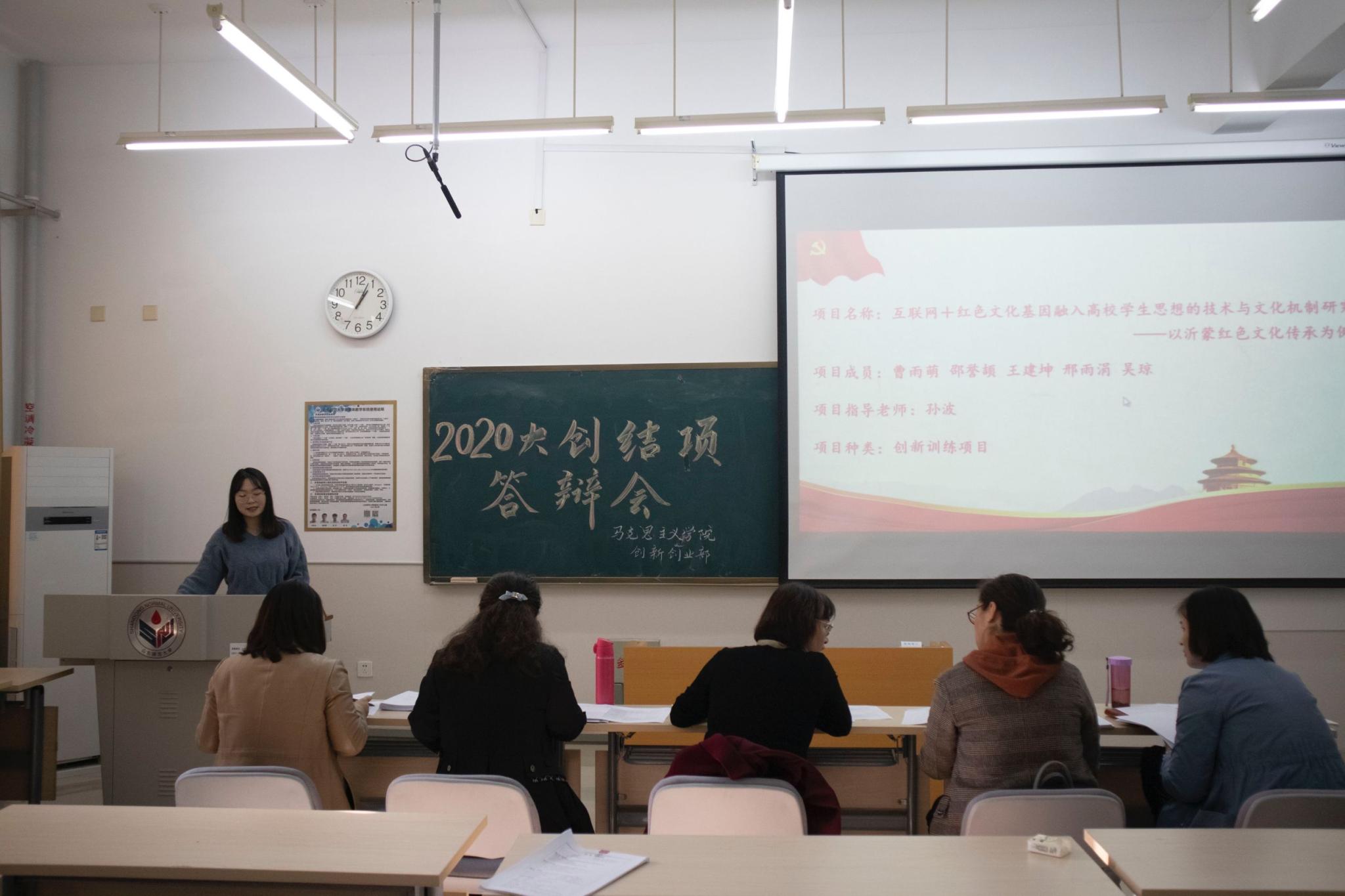 会议开始,各团队答辩人依次上台,通过演示文稿配合现场解说的形式进行结项介绍。2018级思师班的邓雨欣及其团队通过对“以齐鲁家风助推文明实践中心建设研究”的项目研究,形成可推广至全国各地文明实践中心的共同智慧,助推优秀传统文化在当今社会主义精神文明建设中绽放独特魅力。2018级卓思班的曹雨萌及其团队在“互联网+红色文化基因融入高校学生思想的技术与文化机制研究——以沂蒙红色文化传承为例”项目中,针对当下“高校学生对红色文化的关注度不足”等问题,依托互联网技术着力打造融入高校学生思想并促进红色文化传承与发展的“互联网+红色文化”资源共享机制。各个团队展示结束后,与会评委本着公平、公正、严谨的原则进行针对性点评,并对项目发展提出建设性意见。各团队表示,将在解决现阶段问题的基础上进一步推进项目工作不断完善,在深化对创新创业工作理解的同时进一步提升创新创业能力水平。