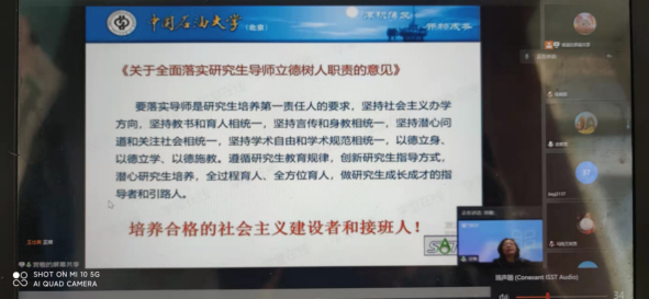8日下午,依托学校提供的雨课堂在线课程资源平台,学院组织近三年新遴选导师集中观看了中国石油大学宫敬教授分享的《研究生导师的任务与责任》及北京师范大学印波副教授分享的《学术发表中的诚信风险与控制》两场专题报告。