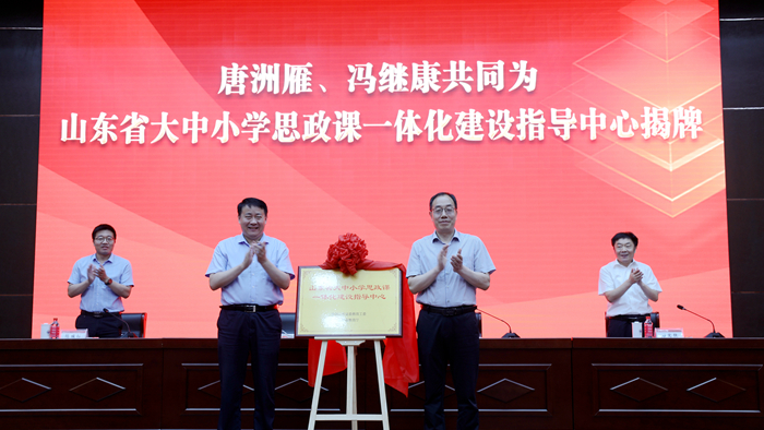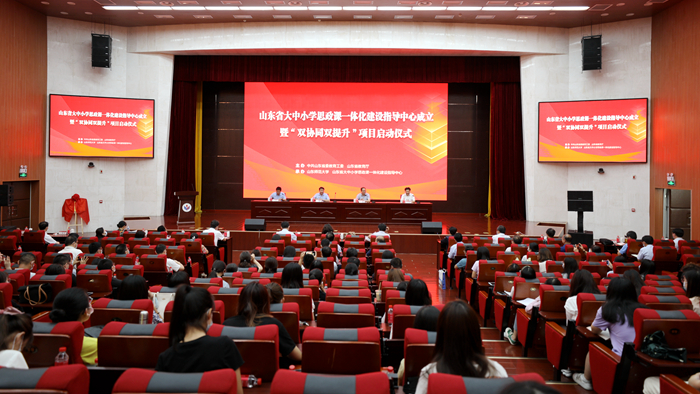 6月20日,山东省大中小学思政课一体化建设指导中心成立暨“双协同双提升”项目启动仪式在我校长清湖校区第一报告厅举行。省政协副主席、校党委书记唐洲雁出席活动。省委教育工委副书记,省教育厅党组副书记、副厅长冯继康出席活动并讲话。我校副校长万光侠致辞,山东省教育厅(省委教育工委)思政处(宣教处)处长陈成标主持活动。