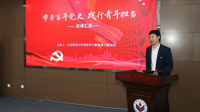 唐洲雁指出,在党史学习教育蓬勃开展之时,在全国上下喜迎建党100周年之际,中央党史学习教育宣讲团到山东宣讲的第一站就来到山东师大,这是中央宣讲团和省委对学校的重视和厚爱。谢春涛同志对学校给予的高度评价和鼓励,特别是结合其自身学习研究党史的生动案例,为博士宣讲团师生上的生动一课,对下一步学校的建设发展和创新党史学习教育具有重要意义。