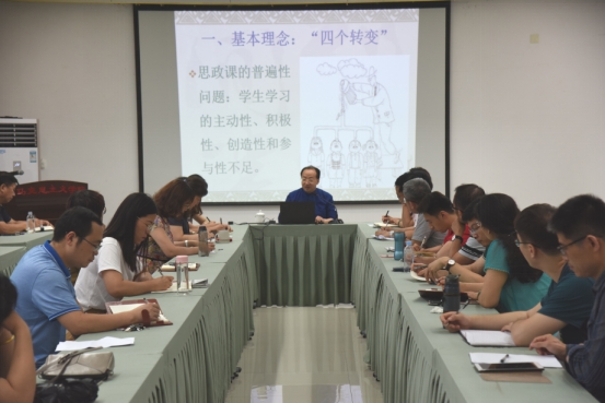冯务中首先从教师角色实现从讲授者向引导者的转变、教学活动和教学研究的重点从教向学的转变、学生地位从教学对象向教学主体的转变,学习方式从被动式学习向主动式学习四个维度阐述“四个转变”的基本理念。接下来,他阐述了“五管齐下”实施方法,强调“听说读写行”一个都不能少,将“思”融入到“听说读写行”过程中,让学生在课堂上“动”起来。随后,他强调要重视即时实效性、结课实效性和长期实效性“三重实效性”教学效果,让思想政治理论课真正入脑入心。最后,徐稳教授对本次报告会进行总结,她对此次报告会作出高度评价,此次报告会的成功举办对学院思想政治理论课课程改革具有促进作用,对建设更高水平的英国365概况具有重要意义。