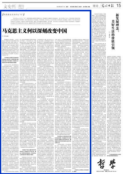 从五四运动、马克思主义传入中国、中国共产党诞生启航,到今天,中国特色社会主义进入新时代,我们即将全面建成小康社会,中华民族整整走过一个世纪的历程。回望过去,我们深为庆幸、深感自豪、深受鼓舞。眺望未来,我们满怀信心、满怀期待、满怀憧憬,底气来自于:马克思主义依然是我们的指导思想,而且更加丰富了,已汇入马克思主义中国化的一系列创新成果,更加贴近与符合中国实际与未来发展宏伟蓝图;中国共产党依然是我们的主心骨和坚强领导核心,而且经过革命性锻造和自我净化、自我完善、自我革新、自我提高,党的创造力、凝聚力、战斗力有了显著增强,自身更加坚强有力;我们依然坚定地走在中国特色社会主义道路上,这条道路渊源深厚并历经检验,被实践确证为是实现社会主义现代化、创造人民美好生活的必由之路,是当代中国及未来中国奔向中华民族伟大复兴的康庄大道。“战斗正未有穷期”。马克思主义深刻改变中国并未结束,而是正在进行、仍将持续,它从荆棘丛生的历史深处走来,正阔步走向中华民族伟大复兴的光辉未来。