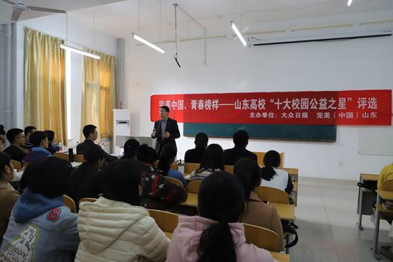 山东高校“十大校园公益之星”评选活动启动仪式的成功举行,不仅加深了同学们对于公益的了解,更在校园内营造了无私奉献、服务社会的文明氛围,对学校的全国文明校园建设和学院的“三全育人”工作有积极意义。