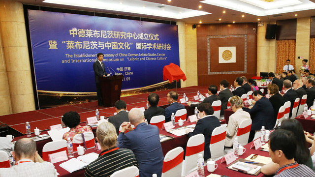 仪式上,斯蒂凡·威尔与唐波共同为莱布尼茨国际研究中心揭牌。在为期两天的时间里,与会学者着重围绕莱布尼茨思想的世界影响、莱布尼茨的科技思想、莱布尼茨与数学,以及莱布尼茨与中国传统文化等重要课题进行系统深入的探讨交流;并就研究中心今后的研究领域和发展规划提出了宝贵意见与建议。