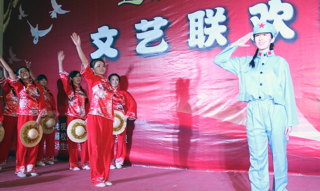 第一篇章中,舞蹈《十送红军》以优美的舞姿将红色年代“小米加步枪”的故事娓娓道来,以此传递对革命先辈的崇敬与缅怀;学院教师张秀云以一曲吕剧选段带领观众领略到山东地方剧种的独特魅力;林静老师的原创诗朗诵《大学,总该有些事情难忘》,深情述说对同学们的殷切期望与深情祝福。