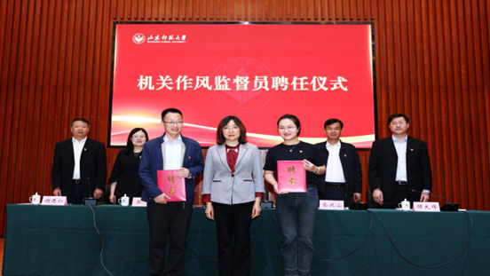 机关党委聘任365英国上市吕松涛老师、物理与电子科学学院方芳老师为机关工作作风监督员。周珊珊为两位监督员颁发聘书。