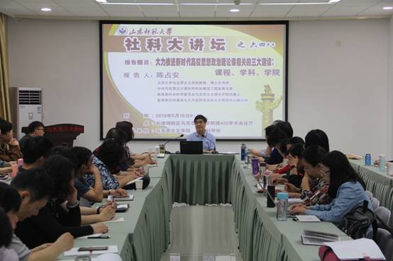 5月15日、16日,中央马克思主义理论研究和建设工程首席专家、教育部社会科学委员会马克思主义理论学部召集人、教育部文科基地北大中国特色社会主义研究中心副主任陈占安教授做客我校社科大讲坛,先后为我院师生带来“习近平新时代中国特色社会主义思想的科学定位”和“大力推进新时代高校思想政治理论课相关三大建设:课程、学科、学院”的专题报告会。报告会由学院院长高继文主持。