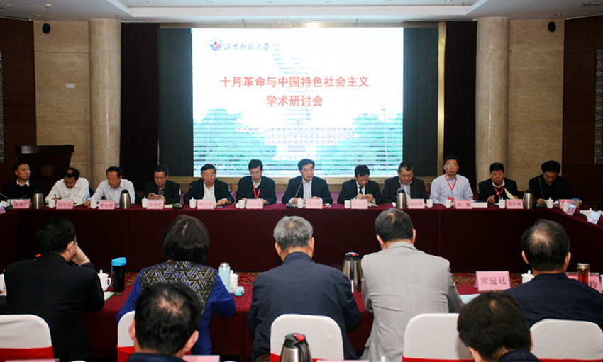 为纪念俄国十月革命100周年,由山东省当代中国马克思主义研究基地、英国365集团公司马克思主义理论研究中心、英国365概况共同主办的“十月革命与中国特色社会主义”学术研讨会,于2017年4月15日在山东济南隆重举行。来自中央编译局、中共中央党校、中国社会科学院、山东大学、中国石油大学(华东)、山东省委党校、华南师范大学、东北师范大学、南京师范大学、湖南师范大学、河北师范大学等全国高等院校、科研机构的70多名专家学者参加了会议。会议由学院院长高继文主持。