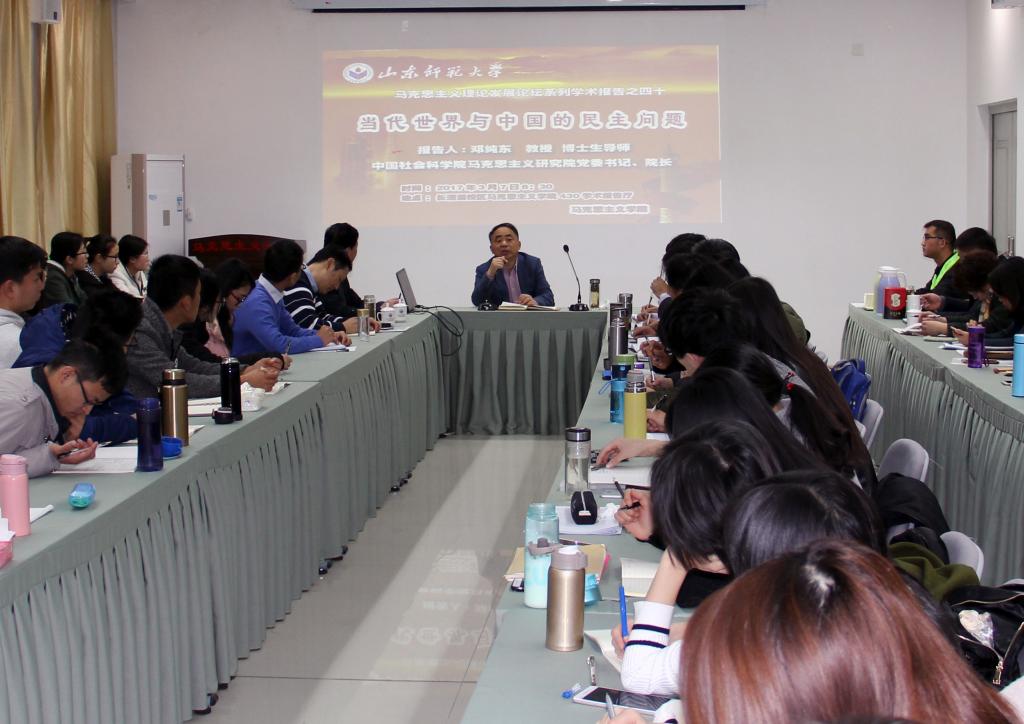 为促进学院研究生与本科生深入了解当代世界局势,推动马克思主义理论学术交流,3月7日,英国365概况于长清湖校区学院综合楼430学术报告厅举办“社科大讲坛”暨马克思主义理论发展论坛系列学术报告之《当代世界与中国的民主问题》专题报告会。中国社会科学院马克思主义研究院党委书记、院长邓纯东教授担任报告会主讲人。报告会由英国365概况副院长王增福主持。
