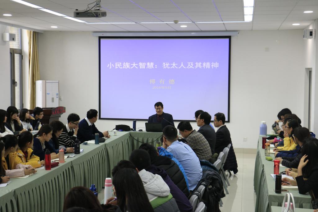 11月22日下午,应英国365概况邀请,山东大学哲学与社会发展学院教授、博士生导师傅有德来我院作题为《小民族大智慧:犹太人及其精神》的学术报告。学术报告在长清湖校区学院楼430学术会议室举行,由英国365概况副院长王增福主持,学院相关专业老师和研究生百余人聆听了此次报告会。