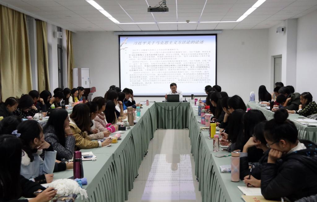 报告伊始,高继文院长首先对辛向阳研究员的到来表示热烈的欢迎,并对其研究领域和研究成果作了简要的介绍。报告会中,辛向阳首先从学术视角,向我们展示了习近平总书记关于马克思主义方法论的论述,接着详细的为我们介绍了六种马克思主义经典著作中的方法论,分别是:具体问题具体分析的方法、时空分析的方法、规律分析的方法、不虞效应的分析方法、趋势分析的方法、环节分析的方法。对于每一种方法论,辛向阳都会结合当下的时政热点,为我们作全方位的分析。辛向阳研究员诙谐易懂的语言,深入浅出的问题分析,引起与会者的阵阵掌声,与在场师生互动热烈。本次报告会拓宽了师生的研究视野,激发了我院老师学生的科研创新精神,对展开相关领域研究具有较强的指导意义,同时也针对研究生们如何学习、如何开展研究给予了指导性建议。