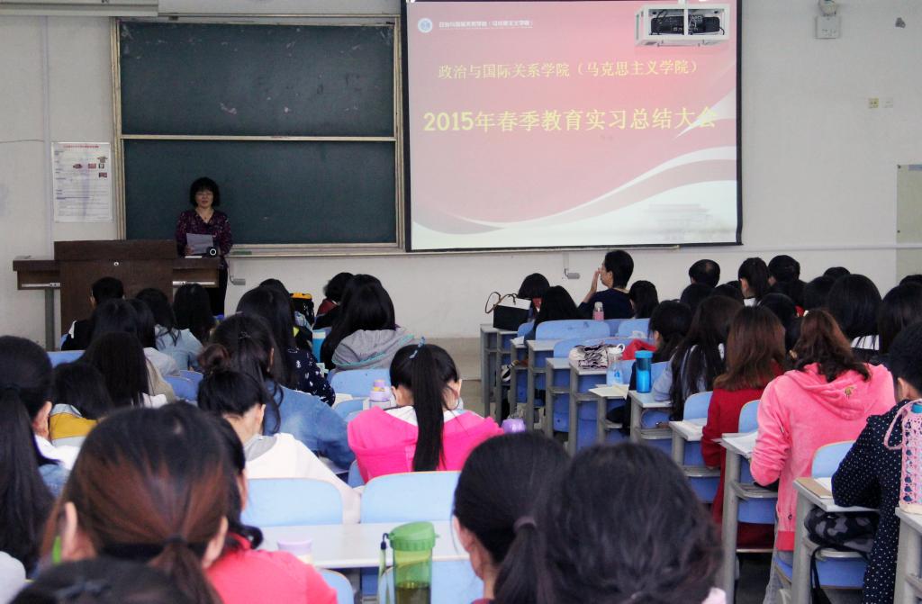 5月7日,政治与国际关系学院(英国365概况)2015年春季教育实习总结大会在长清湖校区综合教学楼C区216教室举行。学院副院长杨素群,实习点指导教师王法学、王兰芳、史家亮、孙天蕾、安秀伟以及2012级思政专业全体学生参加了会议。会议由2012级辅导员魏强主持。
