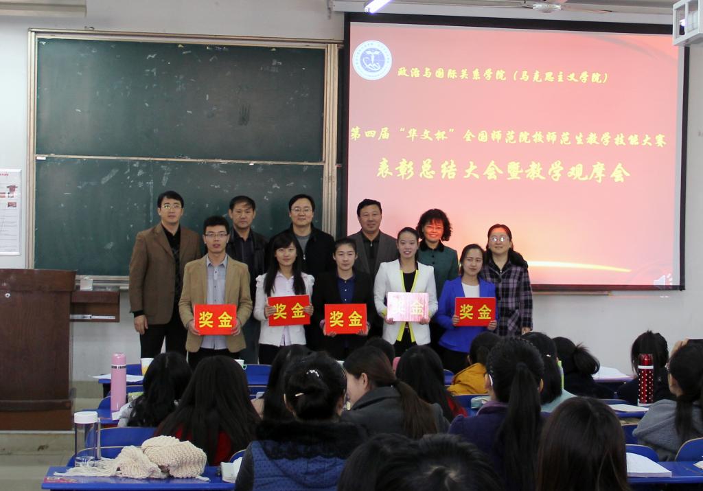 近日,政治与国际关系学院(英国365概况)在长清校区综合教学楼C区236教室举办第四届“华文杯”全国师范院校师范生教学技能大赛表彰总结大会暨教学观摩会。学院党委书记李鹏健,副院长杨素群,党委副书记吕晓勇,副院长王敬政,大赛指导老师王法学、王兰芳和学院团总支全体老师出席本次会议。2012级思想政治教育专业全体同学参加本次会议。会议由吕晓勇主持。