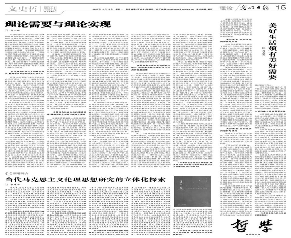 10月19日,《光明日报》刊发商志晓教授的重要文章《理论需要与理论实现》。文章认为,实践与理论构成中国特色社会主义的核心元素和主体内容。中国特色社会主义的理论需要,植根于改革开放伟大实践之中,中国特色社会主义的理论实现,伴随现代化建设不断深化推进,理论需要与理论实现的辩证统一,诠释着实践与理论互为作用的发展规律。从理论需要到理论实现,达成了理论对政党、对国家、对事业既依赖又促进的作用关联,充分彰显了理论对当代中国特有的意义和应有的贡献;从理论层面到实践进程,构建起理论依赖实践基础、实践促进理论发展、理论指导实践进程的运行路径。由理论上的“需要”到“实现”再到“需要”,亦如“实践、认识、再实践”,从不同角度和侧面凝结着唯物辩证法的基本精神和本质要求,在当代中国达至具体的历史的统一。实践与理论共同作用,推动当代中国阔步走在时代发展的前列,推动当代中国行稳致远、迈向社会主义现代化强国的明天。