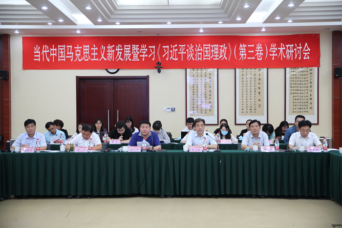 与会专家围绕“当代中国马克思主义的基础理论问题研究”“新中国成立以来马克思主义理论的创新发展”“当代中国马克思主义与21世纪马克思主义的新发展”“习近平新时代中国特色社会主义思想的创造性贡献”“《习近平谈治国理政》第三卷专题研究”等议题展开交流研讨。与会专家一致认为,研究当代中国马克思主义,重点要做好基础理论问题研究,深入学习研究和贯彻习近平新时代中国特色社会主义思想。习近平新时代中国特色社会主义思想是当代中国马克思主义,21世纪马克思主义。这一思想坚持马克思主义的立场观点方法,坚持科学社会主义基本原则,以崭新的思想内容丰富和发展了马克思主义,使我们党对共产党执政规律、社会主义建设规律、人类社会发展规律的认识达到了新高度,为发展马克思主义作出了原创性贡献。深入学习《习近平谈治国理政》第三卷,要牢牢把握住中国特色社会主义这个主题,坚定中国特色社会主义道路自信、理论自信、制度自信和文化自信,切实把学习成效转化为应对风险挑战、推动事业发展的治理能力和工作水平。