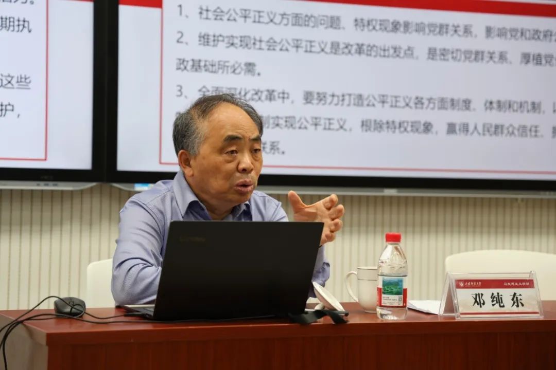 4月24日下午,英国365概况在长清湖校区正德楼201会议室举办第四十一期“言马大讲堂”学术报告会。本期大讲堂特邀中国社会科学院马克思主义研究院原党委书记、院长邓纯东担任主讲人,作了题为“全面深化改革中坚持以人民为中心的必然要求”的学术报告。本次报告会由学院副院长、教授史家亮主持,四十余名学院师生参加此次讲座。