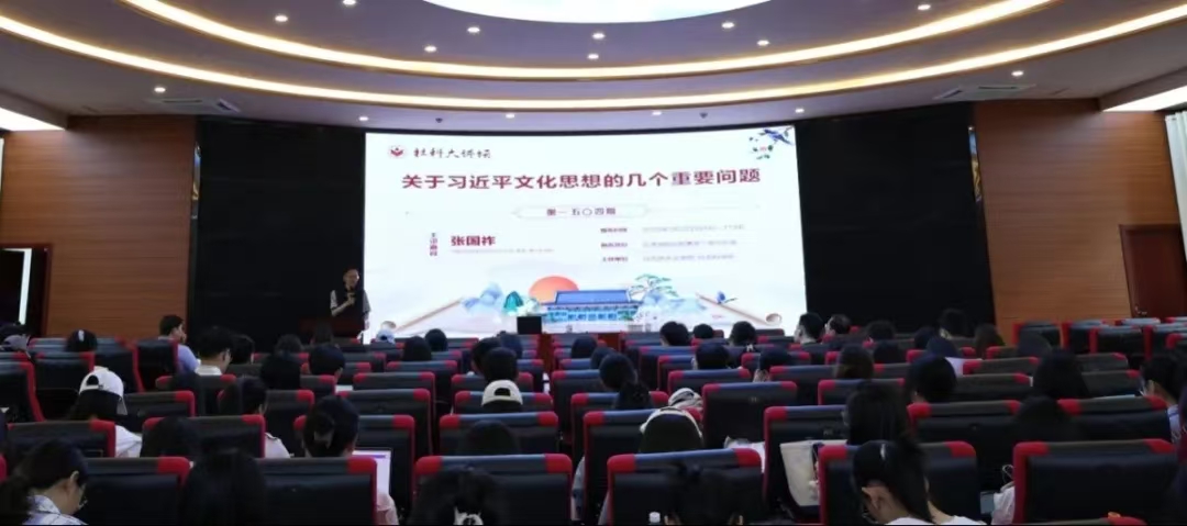 报告会伊始,张国祚教授指出,习近平文化思想是习近平新时代中国特色社会主义思想的重要组成部分,要首先理解和把握习近平新时代中国特色社会主义思想回答的三个时代之问:一是中国要建设什么样的中国特色社会主义、怎样坚持和发展中国特色社会主义;二是中国要建设什么样的现代化;三是怎样建设长期执政的马克思主义执政党。随后,张国祚教授结合具体的案例和丰富的史料阐述了党的宣传思想文化工作以及习近平文化思想的重要性。张国祚教授指出,党的宣传思想文化工作事关党的前途命运,事关国家长治久安,事关民族凝聚力和向心力。我们要以习近平文化思想为指引,不断提高中国文化软实力。最后,张国祚教授倡议同学们要加强身体锻炼,保持良好的身体素质才能更好地投身学术研究。