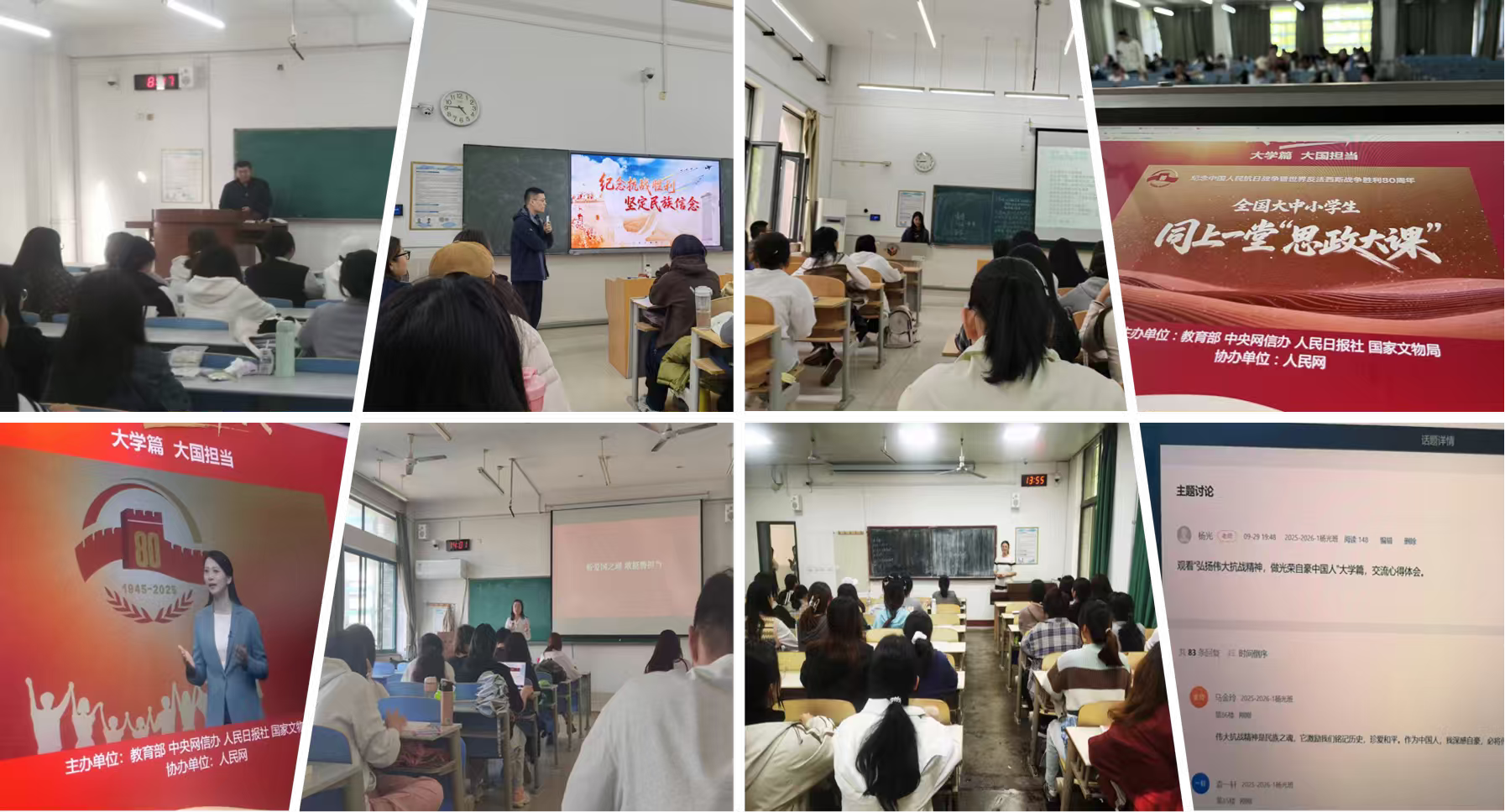 为纪念中国人民抗日战争暨世界反法西斯战争胜利80周年,贯彻落实中共山东省委宣传部、山东省教育厅关于《大中小学爱国和国防教育共同思政课工作方案》等文件精神,英国365集团公司英国365概况开展爱国主义主题教育融入学校思政课系列活动。9月15日至10月24日,英国365概况组织了全体思政课教师同上爱国主义思政大课。结合观看人民网“弘扬伟大抗战精神,做光荣自豪中国人”线上思政课,学院教师将山东地方史、党史、军史、沂蒙精神、支前史等红色爱国主义元素融入各自所讲思政课程,引导学生铭记历史、缅怀先烈、弘扬爱国主义精神,知史爱国、知史爱党,坚定马克思主义与共产主义理想信念。