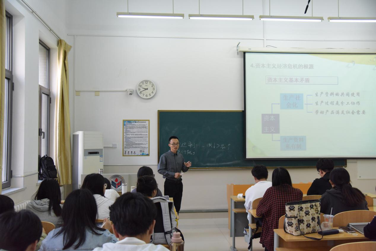 本次公开课由学部新进青年教师陶惠敏主讲,授课内容为“资本主义经济危机及其根源”,活动分为课堂展示和课后研讨两个环节。课堂教学以1929年美国经济危机导入课题,通过展示有关材料详细讲解了资本主义经济危机的主要表现、本质特征和周期性特点,进而引导学生深入分析和理解资本主义经济危机产生的根源,并在理论与实际相结合中引发学生关于在社会主义市场经济体制的背景下如何正确认识和把握资本的特性和行为规律问题的思考。
