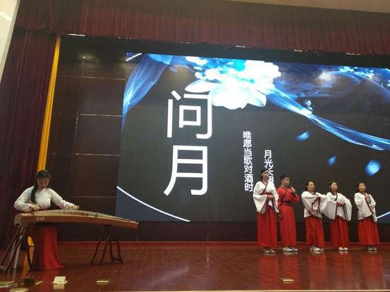 本次大赛以“中华优秀传统文化融入思想政治理论课教学”为主题,思政课教师帮助学生精心选取吟诵篇目,细心指导设计参赛环节,同学们踊跃参加、认真准备,发挥多才多艺的能力,采用丰富多彩的形式,活动取得了圆满的效果。表演大赛共有24个吟诵节目,有《诗经》、《大学》、《中华爱国诗词联诵》中的名篇和《水调歌头》、《将进酒》、《次北固山下》、《枫桥夜泊》、《少年中国说》等经典诗词,其中《琵笆行》、《经典咏流传》、古筝吟唱《水调歌头•明月几时有》+朗诵《把酒问月》、《中华世纪坛序》获得本次大赛的特等奖。