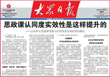 1月11日,《大众日报》以“思政课的认同度实效性是这样提升的”为题,报道了我校思想政治理论课考核与评价体系改革的成功模式。报道如下: