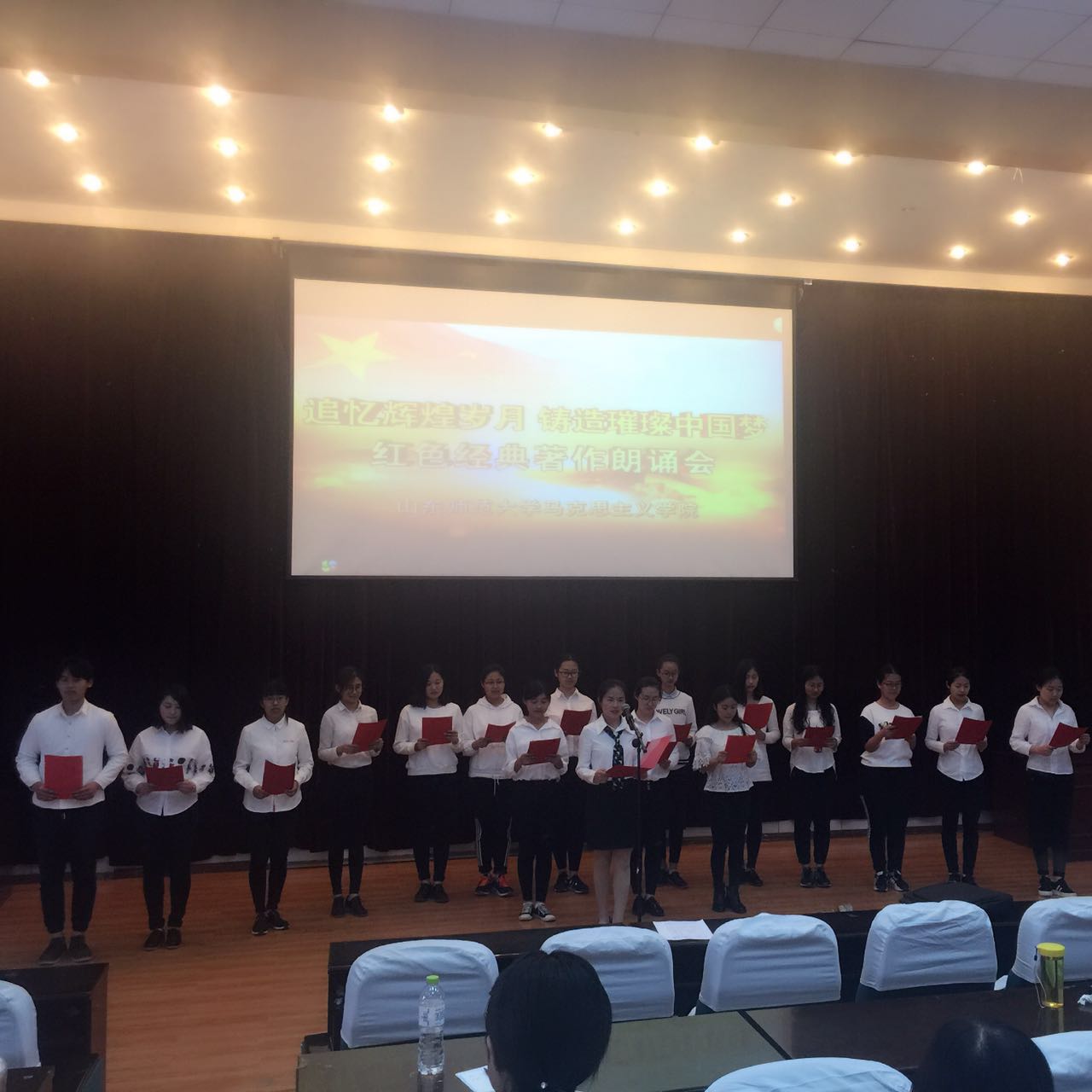 为了进一步深化思想政治理论课教学模式和评价体系改革,增强思政课教学的亲和力、影响力,引导青年大学生从阅读经典著作中汲取知识和营养,学院于4月26日在C区154报告厅,组织全校本学期开设思政课的班级同学代表,举办了以“追忆辉煌岁月 铸造璀璨中国梦”为主题的红色经典著作朗诵会。