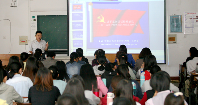 10月13日上午,我校思想政治理论课特聘教授、山东省委党校科研处调研员王凤军教授开讲“特聘教授第一课”,为学院部分思政课教师和教育学院2014级本科生进行了“习近平总书记系列重要讲话精神解读——关于治国理政的思路研究”的专题讲授。