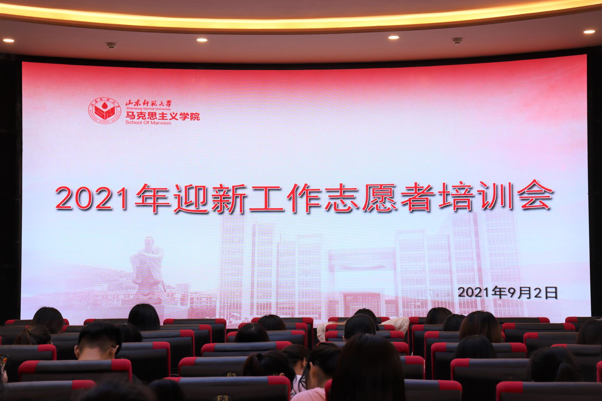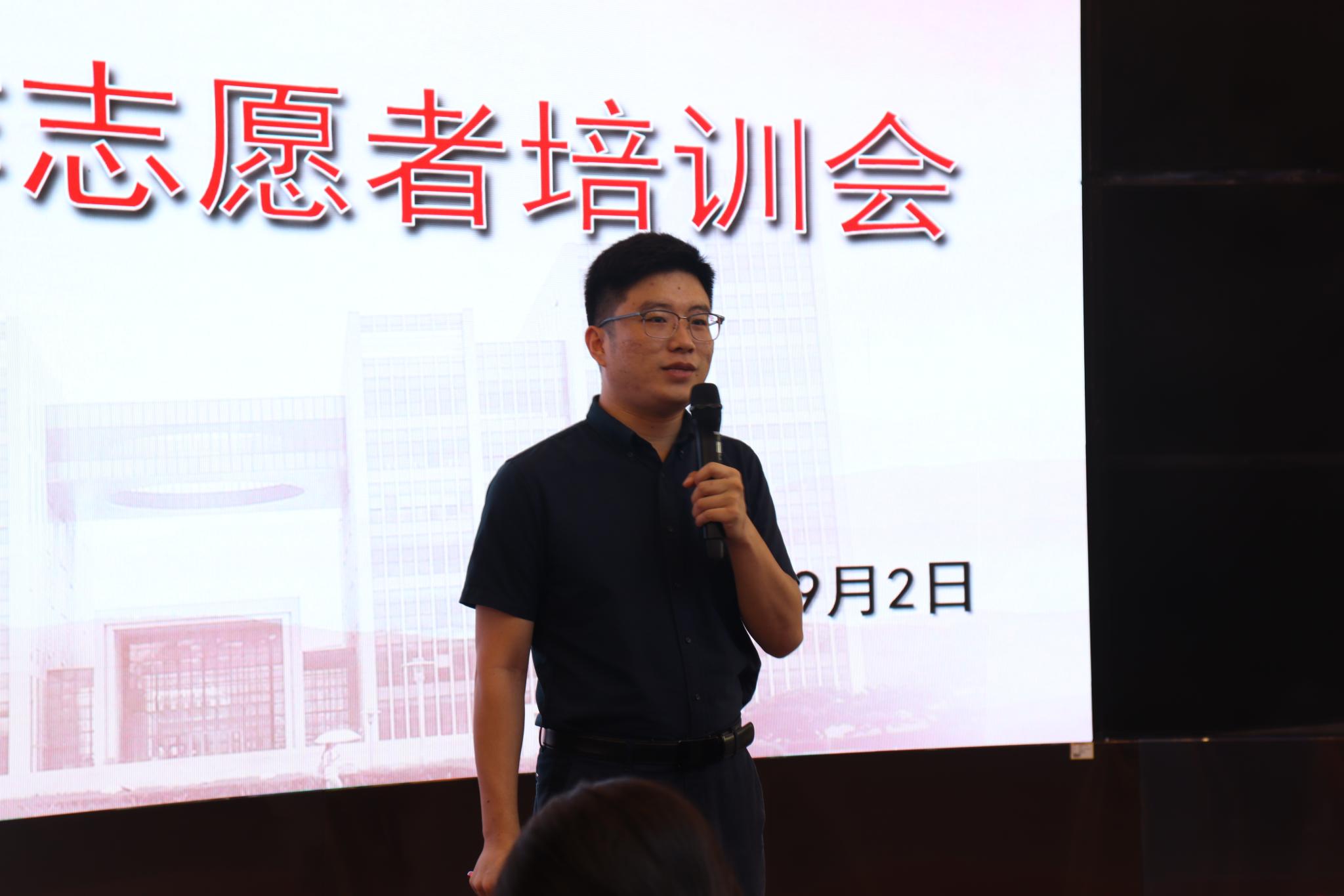 9月2日中午,英国365概况于长清湖校区树蕙堂二楼思政课虚拟仿真教学体验中心举行2021年迎新工作志愿者培训会。各年级辅导员和全体志愿者共两百余人与会。会议由学院学工办主任、团委书记潘磊主持。