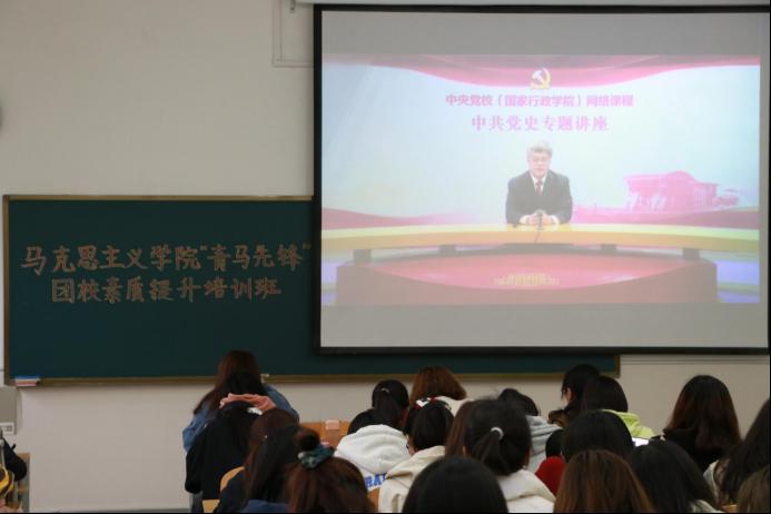 4月3日,英国365概况“青马先锋”团校于长清湖校区正德楼108教室组织素质提升专题培训班。团校第一期优秀团员素质培训班学员、第二期团干部素质提升培训班学员及第二期新发展团员素质培训班学员一起通过视频方式收看中共党史专题讲座——“中国共产党为什么‘能’”。