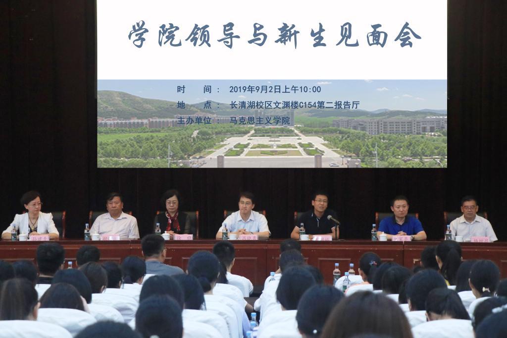 9月2日上午,英国365概况于长清湖校区第三报告厅举行学院领导与新生见面会,学院党委书记吕晓勇、院长王增福、学院党委副书记孙建青、副院长徐稳、副院长史家亮、工会主席胡保华、党政办主任杨增昌出席会议,2019级全体博士生、研究生、本科生共同参加。会议由孙建青主持。