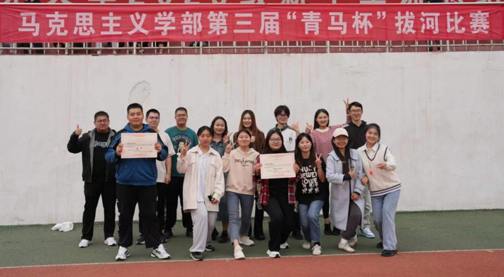 本届拔河比赛共分为小组赛、四分之一决赛、半决赛和决赛四个赛程。经过第一天小组赛的激烈角逐,思政本2303、哲学本2301、党史本2201和研究生代表队四支队伍挺进半决赛。半决赛期间,各班级代表队拼尽全力,呈现了精彩的比赛盛宴。其中,党史本2201和研究生代表队成功晋级决赛,思政本2303在淘汰赛环节中获得季军。最终,在冠军争夺战中,研究生代表队一鼓作气,摘得桂冠。赛后,研究生代表队参赛选手郭聪激动地说道:“这项成绩的取得离不开研究生代表队每一位队员的努力!作为新时代青年学生,我们在追求学业的同时也要重视身体素质的提升,才能更好地担当起实现中华民族伟大复兴的使命!”