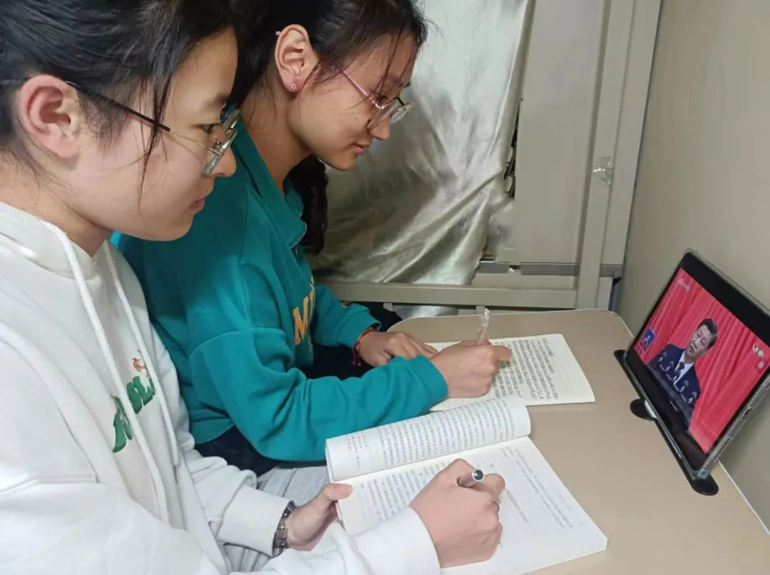 广大师生纷纷表示,要以习近平新时代中国特色社会主义思想为行动指南,深入学习宣传贯彻党的二十大精神,增强“四个意识”、坚定“四个自信”、做到“两个维护”,踔厉奋发、勇毅前行、团结奋斗,为实现中华民族伟大复兴的中国梦不懈奋斗!