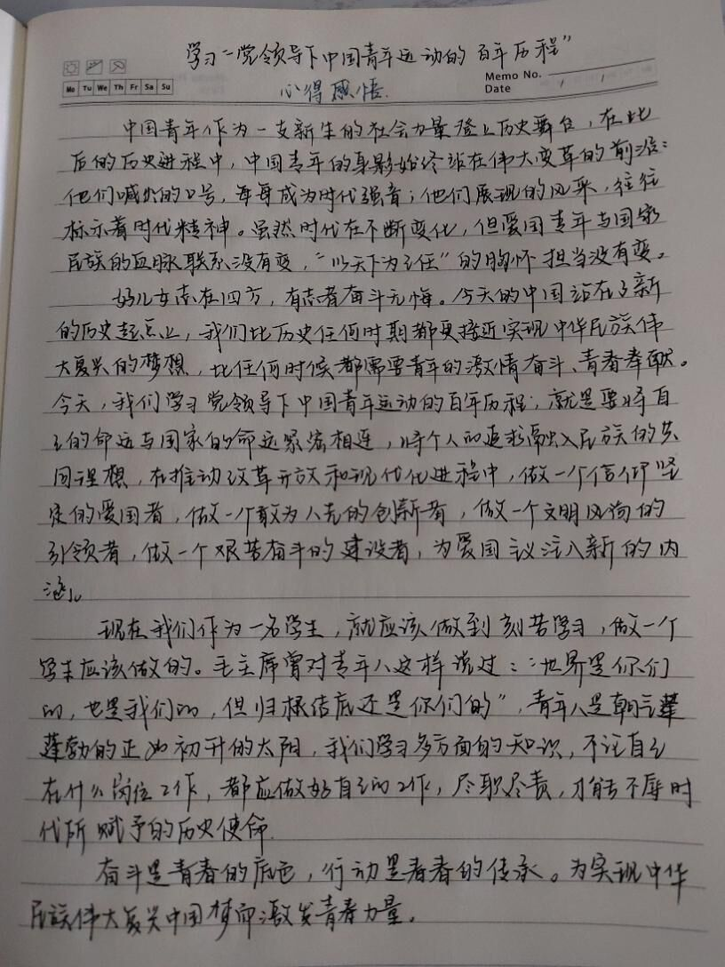 学部为学子们精心准备了团中央书记处理论学习中心组举行的“党领导下中国青年运动的百年历程”主题团日活动的各类学习材料。学子们积极响应号召,认真感悟相关材料、领会报告精神并写下学习感悟。2021级党史班李英华回顾了建党百年的峥嵘岁月以及建团百年的光辉历程,收获了中国共产主义青年团伴随中国共产党而生,中国共产主义青年团跟随中国共产党而奋斗,中国共产主义青年团永远听党话、跟党走、感党恩的真切感悟,发出了新时代青年团员将进一步强化思想担当、行动担当、精神担当,无愧时代重托的诚挚感慨。2021级马理班赵煜晨则在感悟中写道:“正值党的二十大召开和中国共青团建团百年的历史性时刻,我们团员更要坚持党的领导,注重思想建团,发挥共青团员的先进性,展现共青团与国家同呼吸、与人民共命运、与时代齐奋进的责任与担当。”主题团日活动结束后,学子们纷纷表示感悟颇深、受益匪浅。