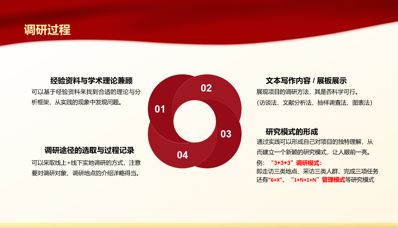 会议上,胡渊博围绕竞赛主要内容、作品要求、评审要点等方面,向参会学生讲解红色专项活动的基本情况。他结合历届优秀作品实例,系统地讲解了活动的调研思路、调研方法、成果转化和展板设计等环节,并表示创新创业部将持续为同学们提供帮助,为参赛学生保驾护航。随后,刘霄作动员讲话,她指出近年来学部学生参加红色专项活动的热情日益高涨,体现了学部学生厚植家国情怀、涵养进取品格的精神风貌,期待同学们能够勇于实践、敢于创新,完成更高质量的参赛作品。同时,刘霄还分析了以往部分参赛作品存在的主题内容匹配度较低、选题视野较窄等问题,并针对性地给出了建议。2023级马理班张润泽说道:“本次分享会让我受益匪浅,我将积极参加红色专项活动,期待能够在活动中锤炼观察社会、感知时代的能力,在竞赛活动中不断成长!”