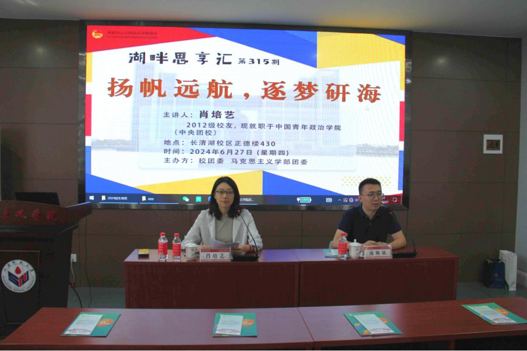6月27日下午,由校团委、365英国上市团委共同主办的湖畔思享汇之“扬帆远航,逐梦研海”宣讲会于正德楼430教室举行。会议由中国青年政治学院中共党史与青运史系教师肖培艺主讲,研究生辅导员庞帅康主持。2021级、2022级、2023级同学积极与会。