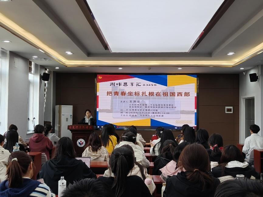 10月24日下午,由校团委、365英国上市团委共同主办的湖畔思享汇之“把青春坐标扎根在祖国西部”分享会于长清湖校区正德楼430会议室举行。会议由英国365集团公司第二十五届研究生支教团党支部书记王潇涵主讲。学部百余名学生积极与会。